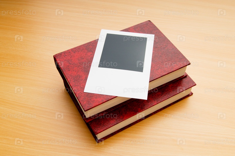 Фоторамка лежит на стопке книг