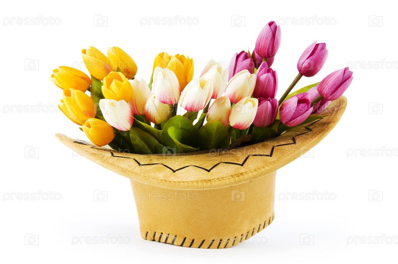 Букет тюльпанов в ковбойской шляпе