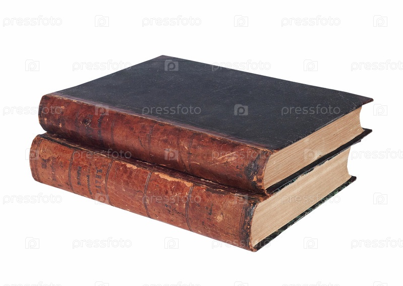 Две старые книги лежат на белом фоне