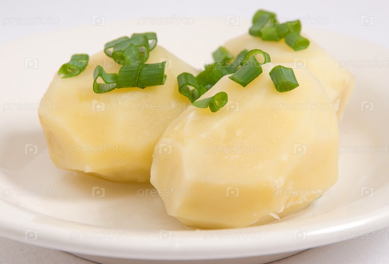 Вареный картофель с зеленым луком