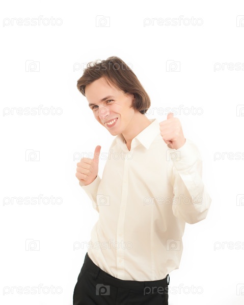 Веселый молодой мужчина на белом фоне