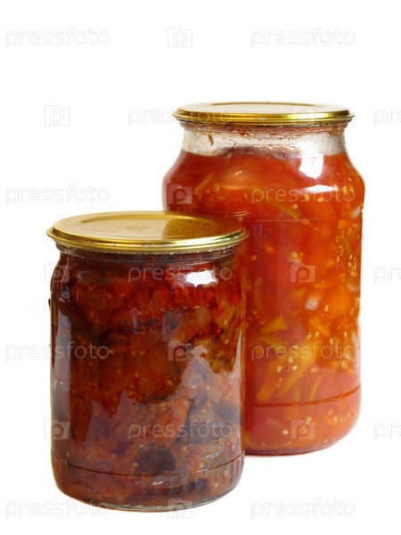 Банки с заготовками на белом фоне