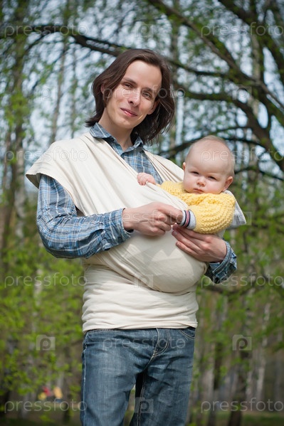 Мужчина с ребенком в слинге