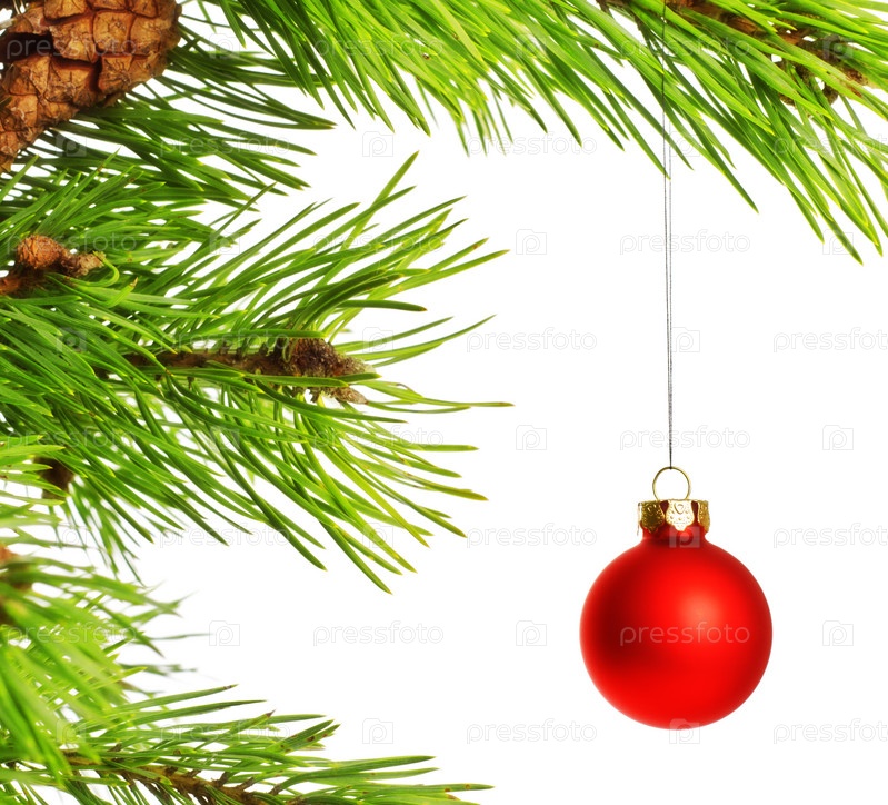 Красный шарик на ветке елки