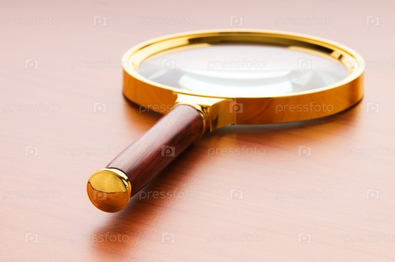 Лупа с деревянной ручкой на светлом фоне