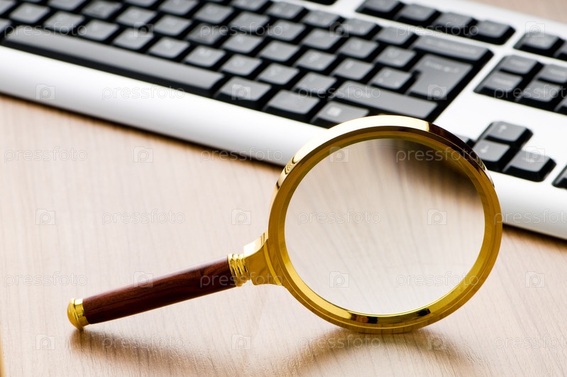 Лупа с деревянной ручкой, лежащая рядом с клавиатурой от компьютера
