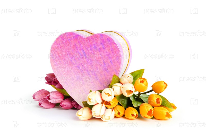 Букет тюльпанов и подарочная коробка