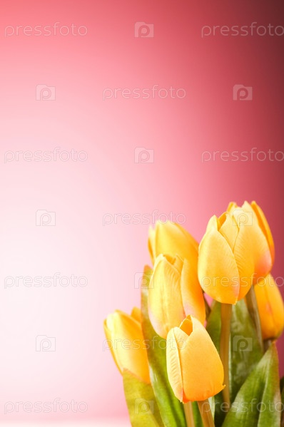 Букет тюльпанов на розовом фоне