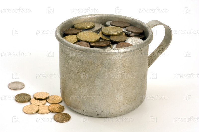 Металлическая кружка с монетами