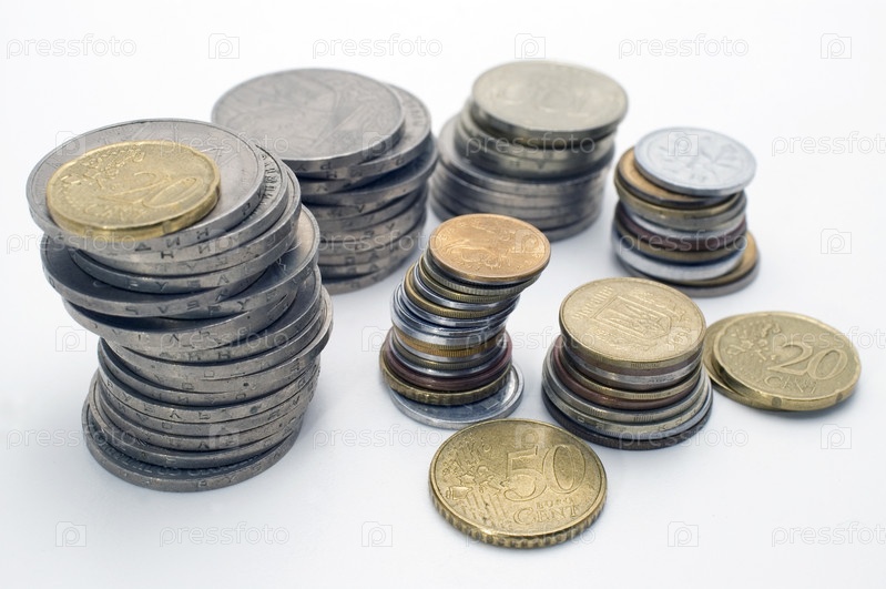 Куча монет на белом фоне