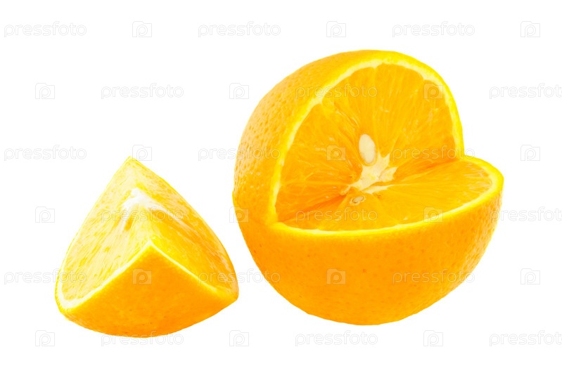 Разрезанный апельсин на белом фоне
