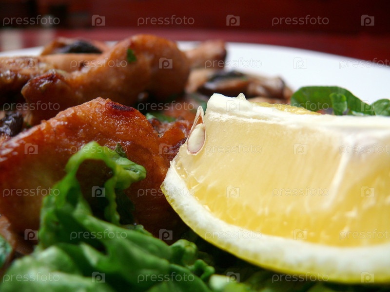 Жареное мясо с долькой лимона