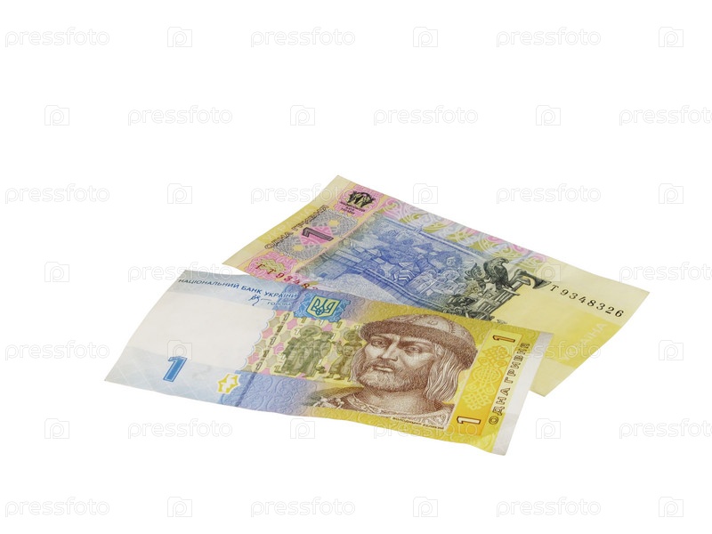 Украинская национальная валюта. Бумажные гривны на белом фоне
