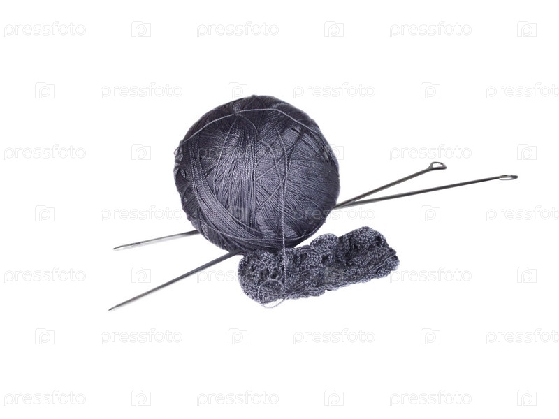 Клубок ниток и вязальные спицы на белом фоне