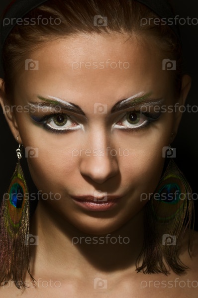 Красивая молодая женщина с ярким макияжем на черном фоне