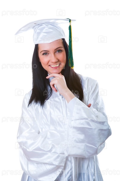 Выпускница на белом фоне