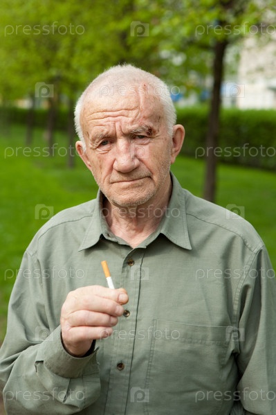 Пожилой мужчина держит в руке сигарету