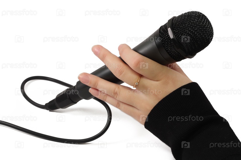 Динамический черный микрофон с кабелем, изолированным на белом фоне
