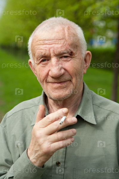 Пожилой мужчина держит в руке сигарету