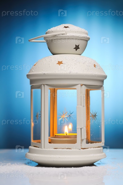 Рождество, зажженная свеча в подсвечнике