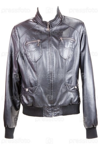Черная кожаная куртка на белом фоне