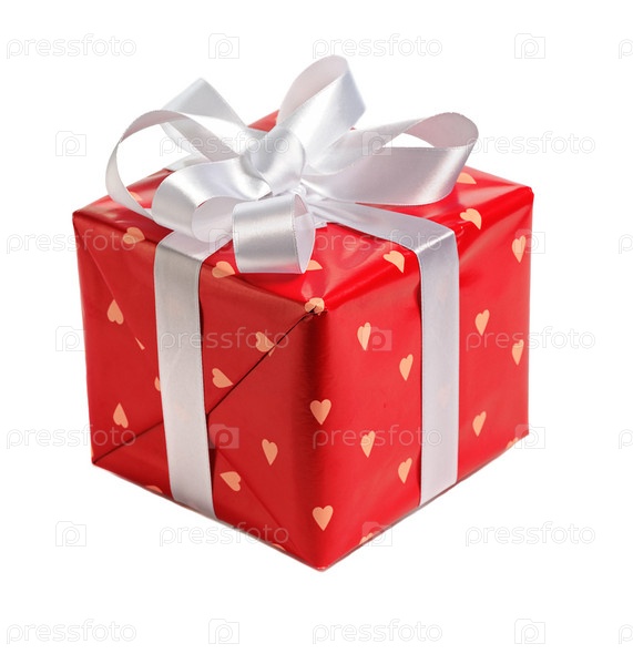 Красная подарочная коробка на белом фоне