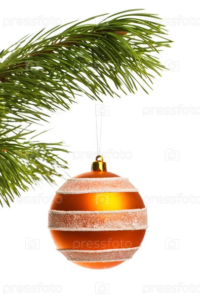 Новогоднее украшение на ветке крупным планом на белом фоне