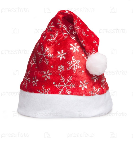 Красный колпак Санта Клауса на белом фоне