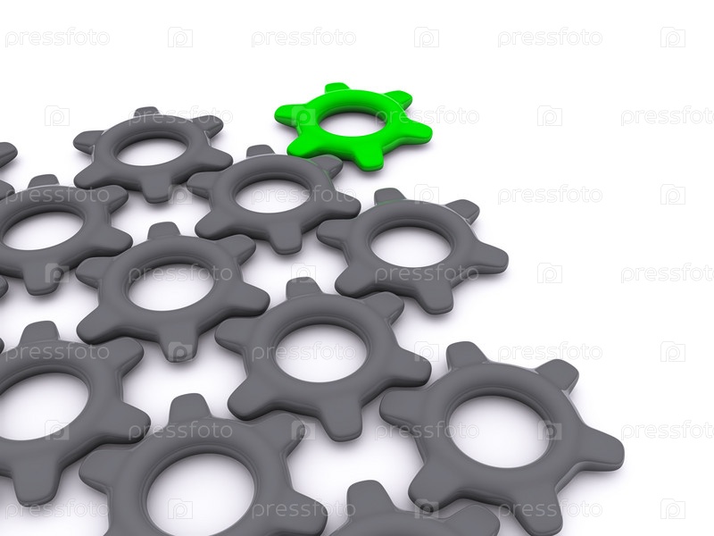 Шестеренки крупным планом на белом фоне