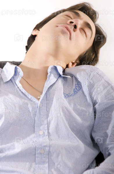 Портрет спящего молодого человека на белом фоне