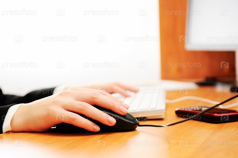 Женские руки на клавиатуре и мышке