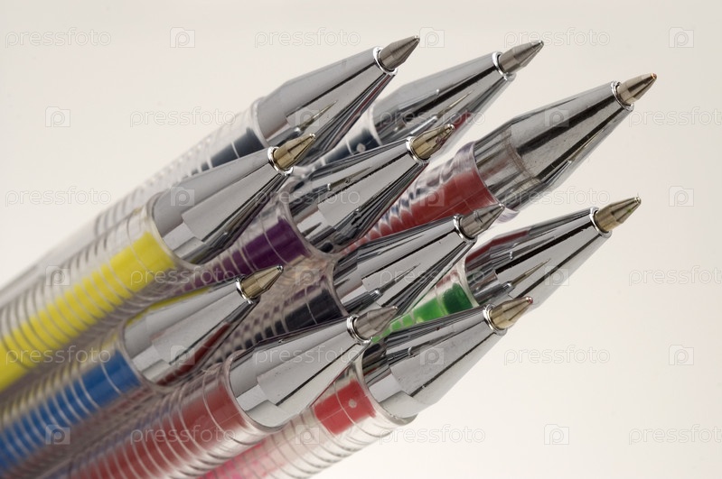 Разноцветные ручки на белом фоне