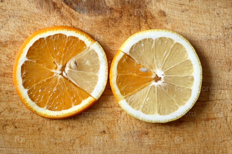 Смешанные ломтики лимона и апельсина на деревянном фоне