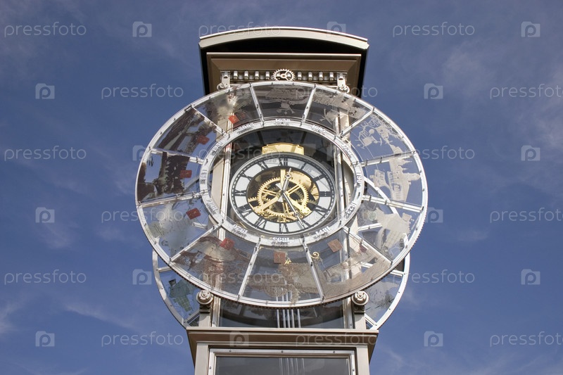 Городские часы на фоне синего неба