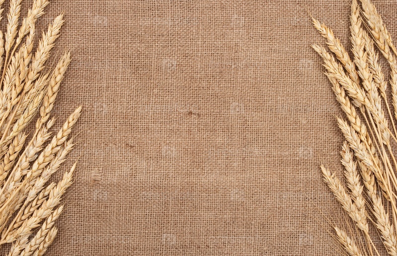 Колосья пшеницы на фоне мешковины