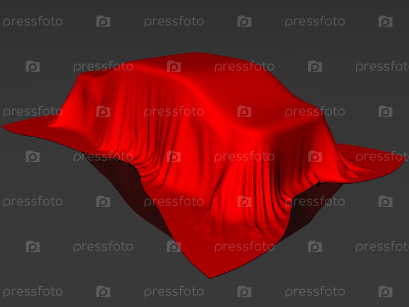 Автомобиль закрыт красной тканью на черном фоне