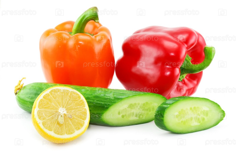 Огурец, лимон и два болгарских перца