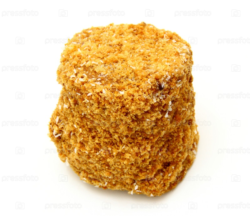 Пирожное с присыпкой на белом фоне