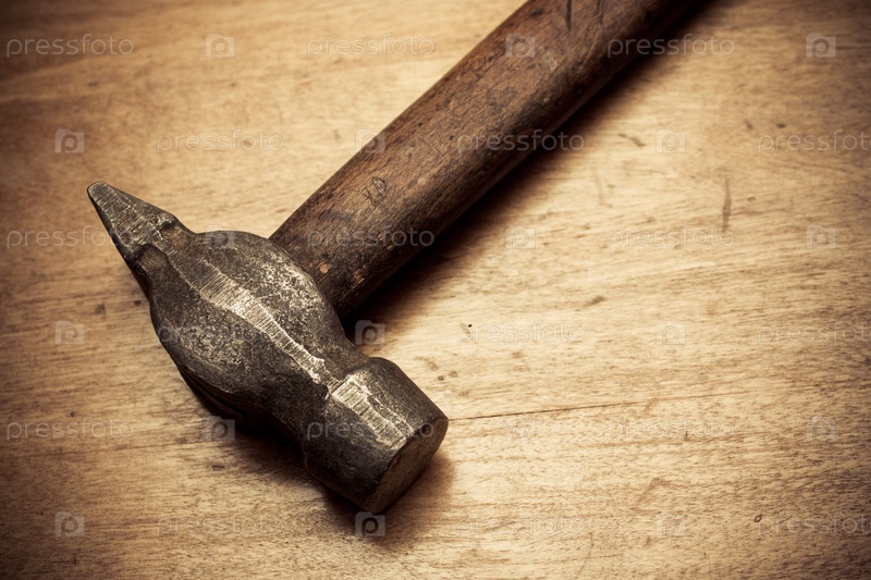 Молоток на деревянном фоне