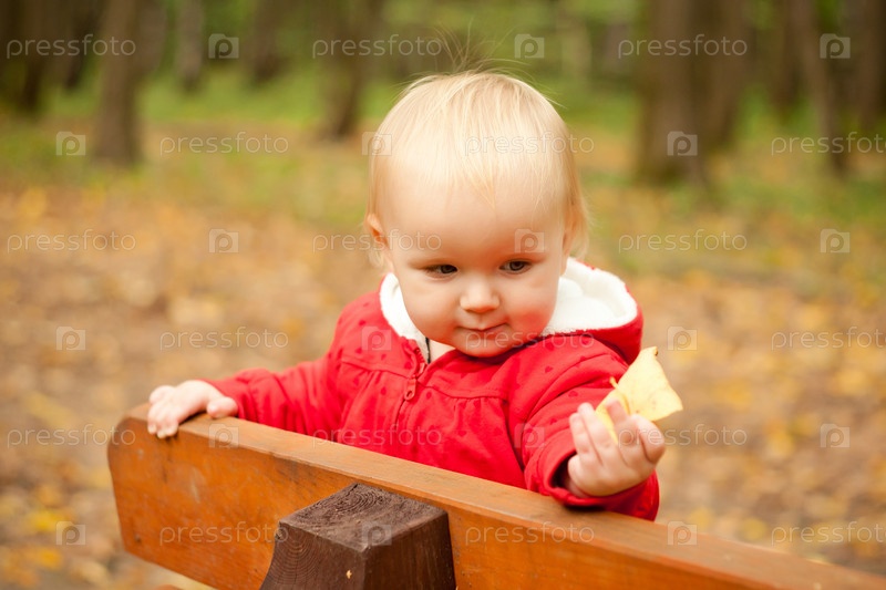 Маленький ребенок с осенним листом
