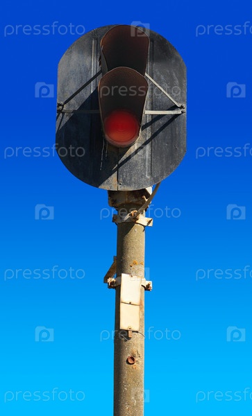 Старый железнодорожный семафор на фоне голубого неба