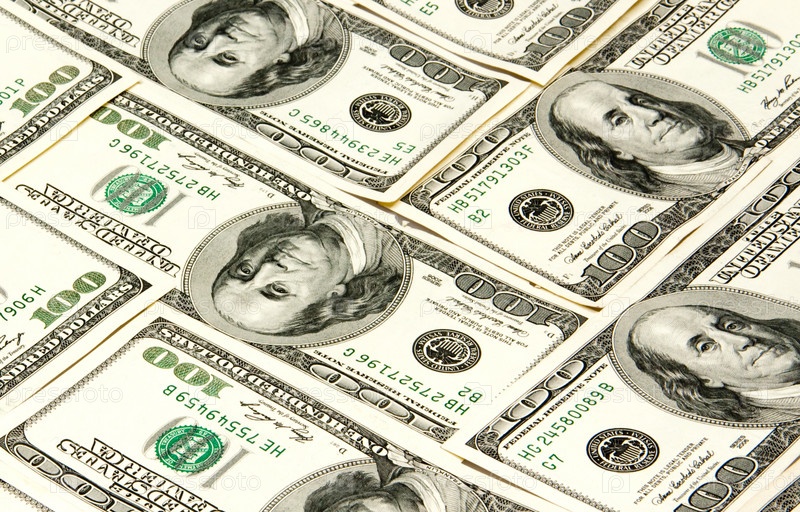 Множество пачек американских долларов на белом фоне