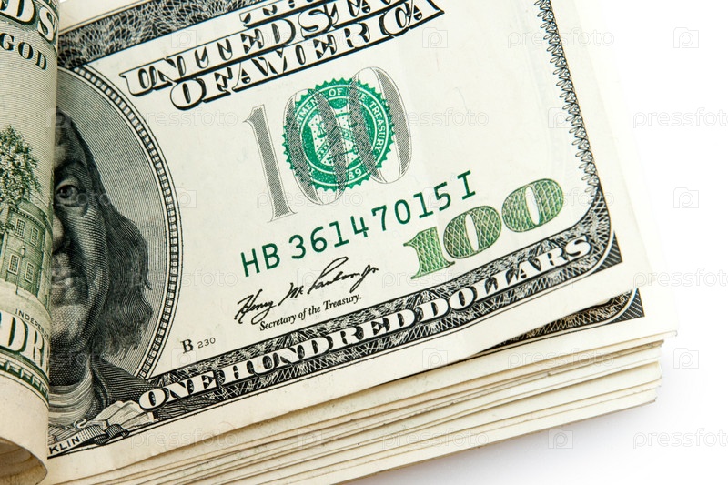 Пачка американских долларов на белом фоне