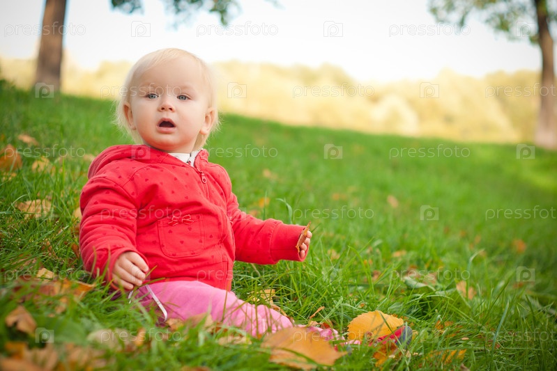 Маленький ребенок сидит на траве