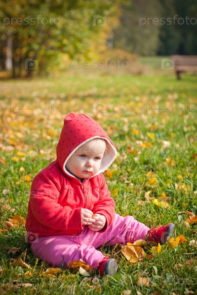 Маленький ребенок сидит на траве