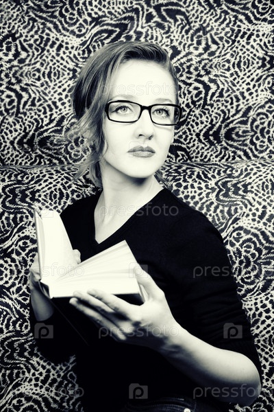 Портрет молодой женщины в очках с книгой
