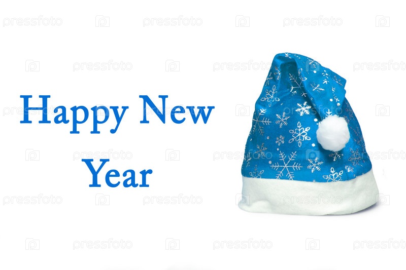 Колпак с Сантой и надписью 'Счастливый Новый год' на белом фоне
