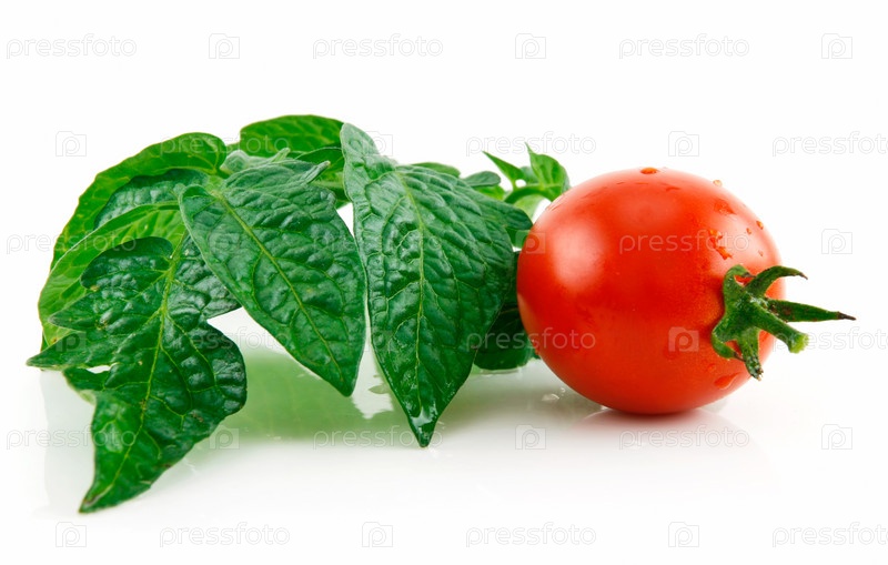 Спелый помидор черри с листьями