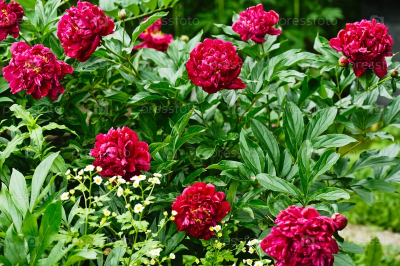 Кусты фиолетовых пионов