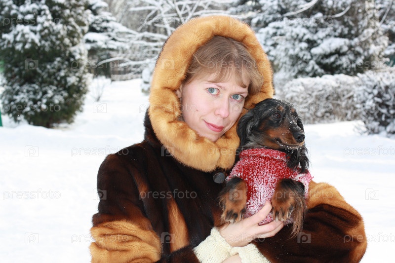 Красивая девушка с собакой в зимнем лесу